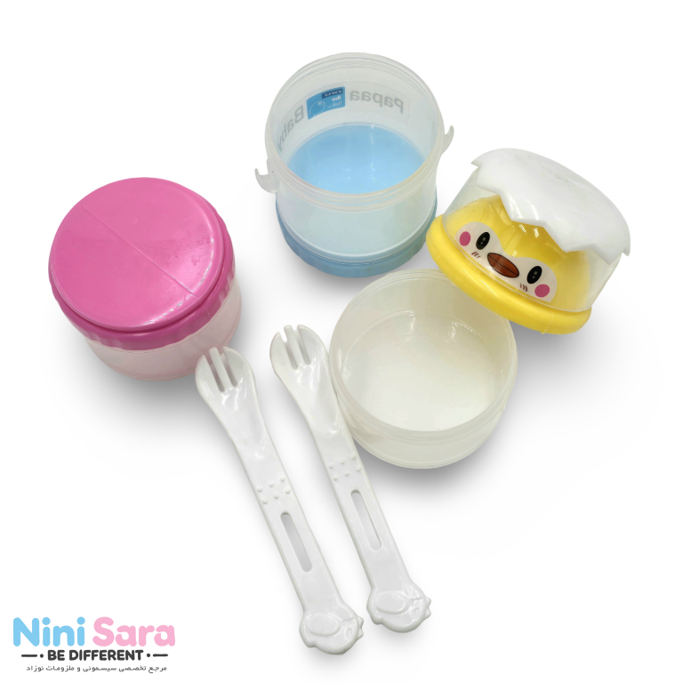 مدلی که مشاهده میکنید، یک انبار غذای ۴ طبقه با طراحی فانتزی و درپوش ایمن است که برای نگهداری و حمل شیرخشک، غذای کمکی، بیسکوییت، میوه خردشده یا حتی اسنکهای سبک نوزاد استفاده میشود. این محصول به دلیل طراحی چندلایه و قابلیت حمل آسان، خیلی زود به یکی از پرکاربردترین وسایل مادران در خانه و سفر تبدیل میشود.