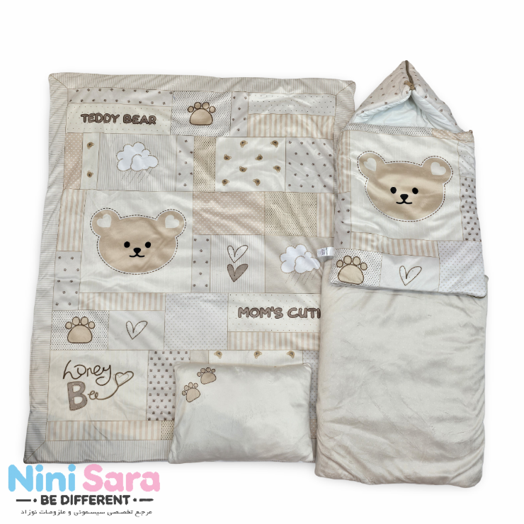 ست سرویس خواب نوزادی مامز کیوتی ۴ تکه طرح پرفروش و جذاب تدی 40 تکه – انتخابی ایدهآل برای سیسمونی نوزاد