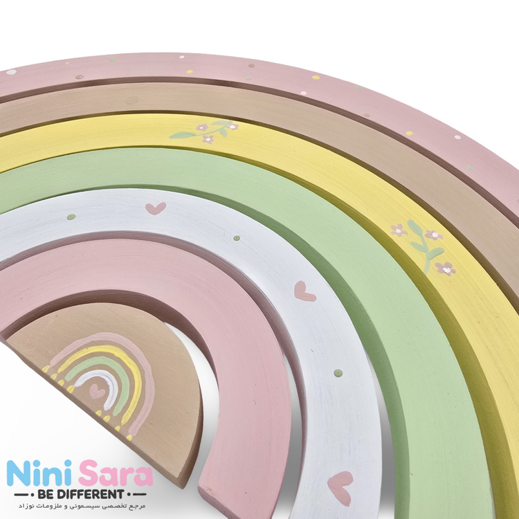 طراحی پاستلی، نقاشیهای ظریف روی هر قطعه و ترکیب ۷ لایهی رنگی، این رنگینکمان را تبدیل کرده به یک محصول خاص، زیبا و کاربردی که هم برای دکور اتاق عالی است، هم برای آموزش و رشد تواناییهای کودک.