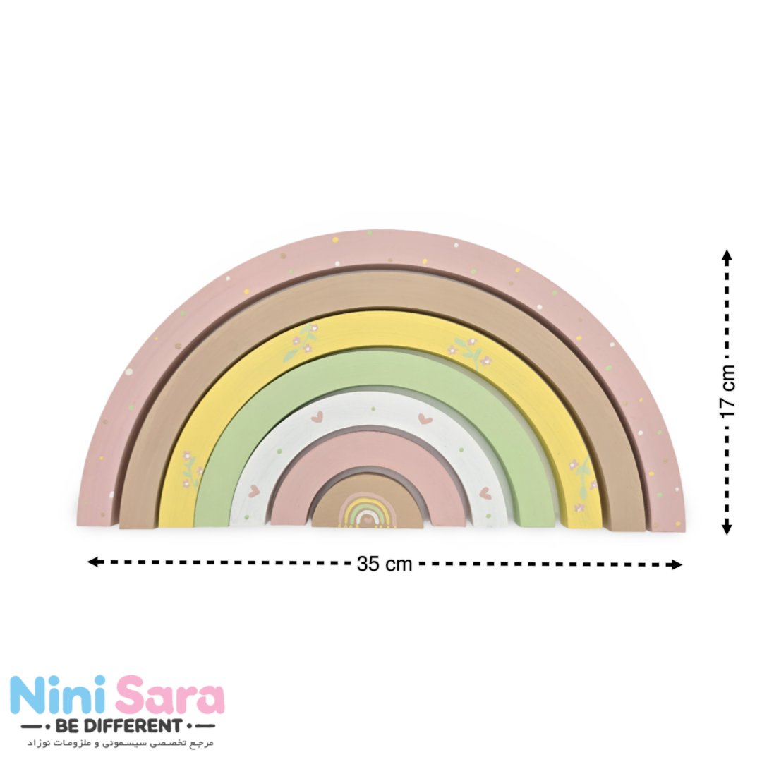این مدل رنگینکمان که در نینیسرا ارائه میشود، کاملاً چوبی، دستساز و ساختهشده از چوب طبیعی راش است و با رنگ اکرولیک مخصوص کودک رنگآمیزی شده.